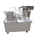 乳液灌裝旋蓋聯(lián)動(dòng)一體機(jī)自動(dòng)灌裝,自動(dòng)落外蓋,自動(dòng)旋蓋、不合格品自動(dòng)剔除..